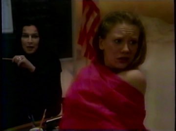Whoever Barbara Alyn Woods is, she has the best range of any actress in the world. For all the crazy parts she had to play, you really believed she had become an evil genius, or been zapped into a computer, or grew a lizard's tongue, or anything. She could go from human to cartoon and back again and make it look routine. Look back up at that ad -- everybody else can barely keep from cracking up, but Barbara is totally into it, grimly staring into the camera like Ellen Ripley. There was one episode where Diane had her mind switched with a cat's, and she even pulled off having a cat brain convincingly. There was just nothing she couldn't do.