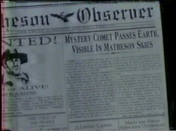 Wayne finds a newspaper scan that proves before the comet crashed, it passed over the area during the days of the Wild West. Since he's already invented a time machine, he's preparing to travel there to observe it, and he drags his family along too because...if they're not there, there'll be no one to fall into peril later.