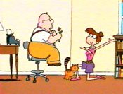Given what we know about Mr. Morton and how reclusive he is, this might be the first time she has ever seen or talked to him. The song only had three minutes at maximum to tell this story, but much of it happened in real time. This is the shortest courtship I've ever seen in all moving-picture history. He just faced her, breathed once, maybe he didn't even have time to exhale, and she yells "MARRY ME!" And just in case anyone watching this cartoon doubts such a hasty hitching would work out, "THE MORTONS LIVED HAPPILY EVER AFTER" clearly appears on the screen in large type.
