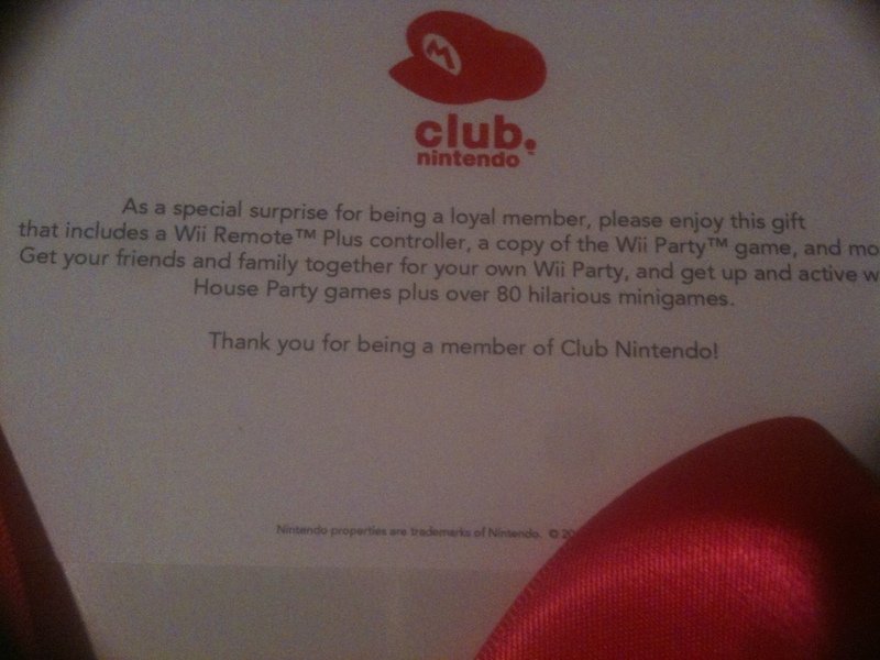 ASSET" COPY OF WII PARTY At one point, Nintendo randomly sent copies of Wii Party, plus free remotes,