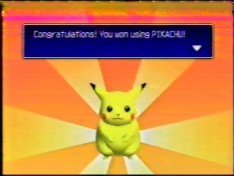 But I did everything. I managed to register all 151 Pokemon into the Hall of Fame area(you gotta do it six at a time, and you better win). I completed every single thing in the game and beat Mewtwo, unlocking "Round Two," which is the same game yet TWICE as hard. And I got all the way to the end of THAT to get...Surfin' Pikachu.