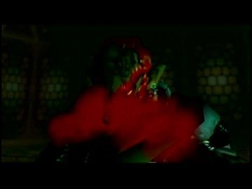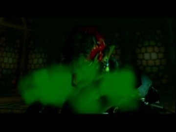 Not only that, he also bled rather dramatically when Link smashed him in the face during his Ganon transformation. This was also colored green after the gold carts were sent out. Ocarina of Time was delayed nearly a year, yet there was still a tight race against deadline to bring it to market on November 23, 1998. Given what we see here versus all other versions, it's obvious the gold carts were made first--BEFORE an official verdict came in from the ratings board. Airborne blood automatically gets you a T rating, and that's not what Nintendo wanted. If this game had a more relaxed development schedule, the public might have never seen Ganon bleed at all.