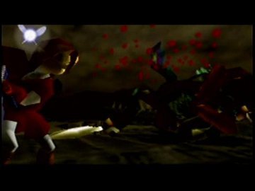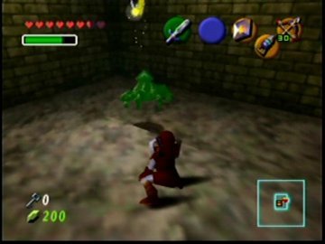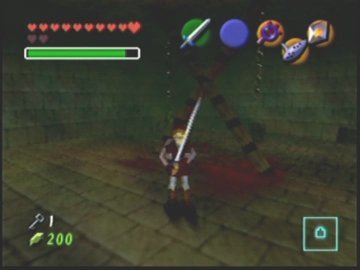 the Shadow Temple that has a red-stained floor. That's pretty bloody all right, but it has never been erased in any version of this game. Apparently stationary blood is A-OK. |