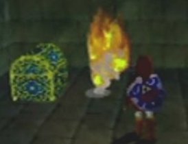 Nor will we ever know what this weird ice structure was for. Hackers found it in the model database--it was for the Ice Cavern, has stairs on the other side that let you climb to the top, and melts when exposed to Blue Fire. It's not in the regular game.....but for some reason, it was in the version that came out for Gamecube with rearranged dungeons. It ended up holding a key. |