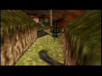 | If you Hookshot the branch to get inside the Forest Temple but find you climbed on top of the branch, you can jump off it to enter the Temple--and Link will run and sink into the ground. This useless trick can be done in all versions. |
