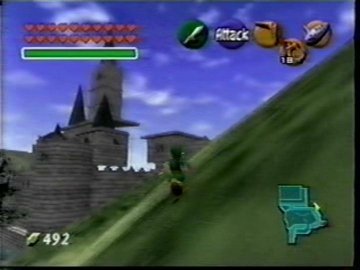 | Using the Ocarina turns the camera to this angle and makes Link invisible. |
