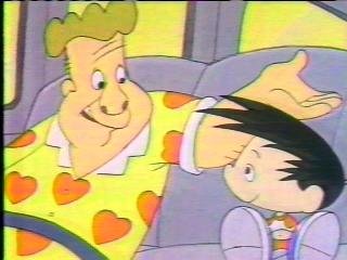 MOM?" "Nah, I'll take ya later, ya know, when the line is shorter, doncha know..." "I WANNA GO ON THE ROLLER COASTER NOOOOW!!" Bobby turns green and "bulky" again... |