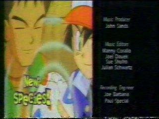 The POKERAP! It may be cheesy, but it's a classic, mainly because no one's been able to see it broadcast for years. After a couple years of WB ownership, it was cut to make space for one or two more ads. But back then, there was something called the POKERAP. The Kids WB Pokerap was slightly different, in that they deleted the voice of the announcer who said things like "150 POKEMON, 5 DAYS A WEEK! THAT'S ABOUT 30 OR SO EACH DAY!" and "TUNE IN TOMORROW FOR MORE!" He was probably excised because what he was saying only applied to the syndicated version that season. Instead, on that "Today's Pokemon" screen, they inserted a quip from the Kids WB announcer: "Tune in next week to see Ash, Misty and Brock continue on their quest to become Pokemon Masters! Don't miss 'em--the new ones are ONLY on Kids WB!" A point that would be repeated during the credits...
