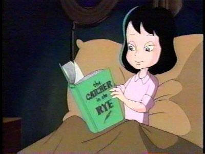 Maybe Spooky is -- he and Poil decide to eavesdrop on the competition. Casper tries to scare Kat in her closet: "Woooo, I'm a haunted shirt!" But nothing. Kat is later in her room reading Catcher in the Rye, when Casper emerges from the book dressed as Holden Caulfield. "Woooooooo! Everyone is so phony, it makes me sick! Woooooooo!"
