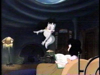 I was surprised to see Spooky! Spooky never appeared in the movie, and maybe it would have been a little better if he had, as he was the only tolerable thing about Casper comics. He is exactly the same here as he was on paper: a "tuff little ghost" with a New England accent and attitude to match. He's voiced by Rob Paulsen, the go-to man for "hey youse guys" characters like Fowlmouth and Steelbeak. Spooky's girlfriend Poil also made the cut. I like the name "Poil." I think it's perfect for a ghost, even if it's an accented alteration of "Pearl," which is what lazy writers named secondary female characters back when Poil was invented.