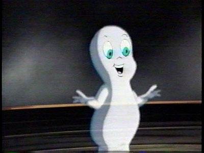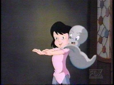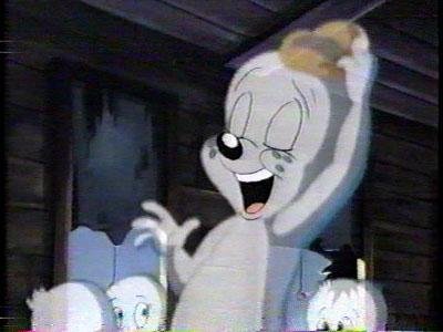After everything she's seen today, Kat is convinced nothing Casper can come up with can ever scare her. That's when he comes up with his coup de grace.....he turns into the creepy Casper doll sold during the forties and says its phrase: "Wanna be my special friiiiiend?" Kat immediately screams like murder and races down the hallway. Now THAT'S funny.