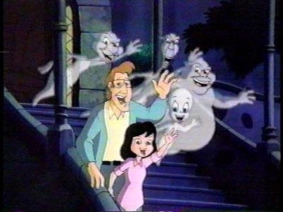 The movie established that a psychologist named Dr. Harvey (I see what they did there) and his daughter Kat moved into a spooky old mansion called Whipstaff Manor. Casper lives there and so does his obnoxious uncles, the Ghostly Trio, who constantly pick on him. The antagonism between Casper and the Trio is taken from the decades of Harvey Comics Casper stayed relevant through, but he never lived in a specific place, he just roamed around the open meadows of the unnamed fairy-tale land all other Harvey characters inhabited.