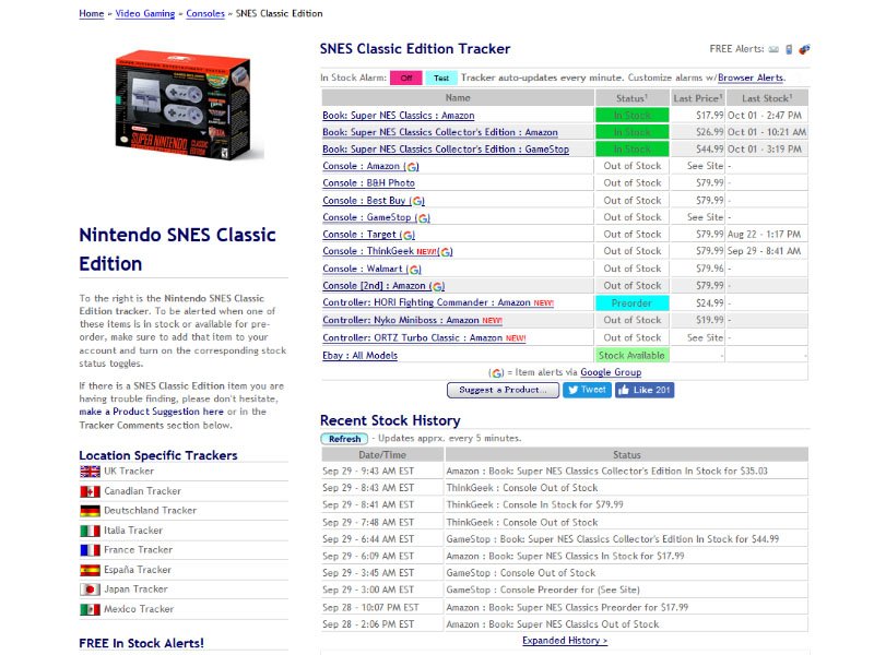 I thought the news coverage would be less than favorable, but it was full of headlines like "The SNES Classic Launch Seems To Be Going OK." I booted up Nowinstock.net, a webpage a lot of Nintendo fanboys had been using during the preorder debacle. Nowinstock tracked the status of demanded items in real time and alerted you instantly when that item was for sale somewhere. I expected a lot of complaints and experiences like mine, and possibly tips on where I could still find one. Instead, just about everyone there was expressing relief over getting a unit and marveling on how "easy" it was.