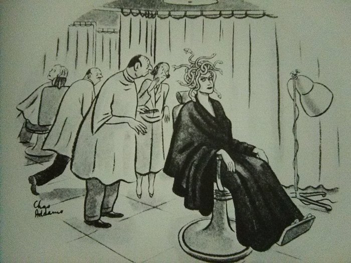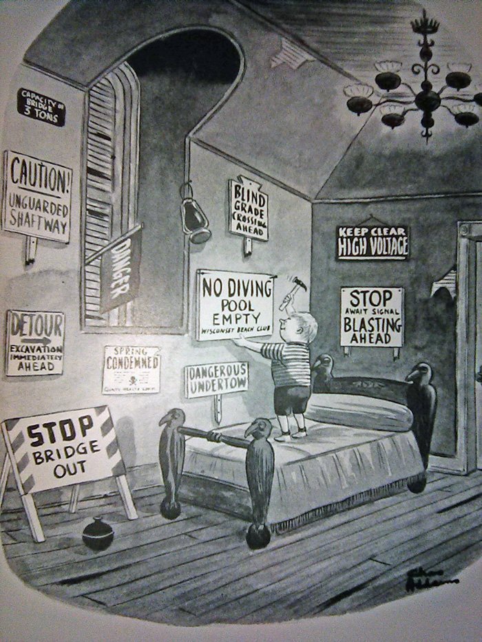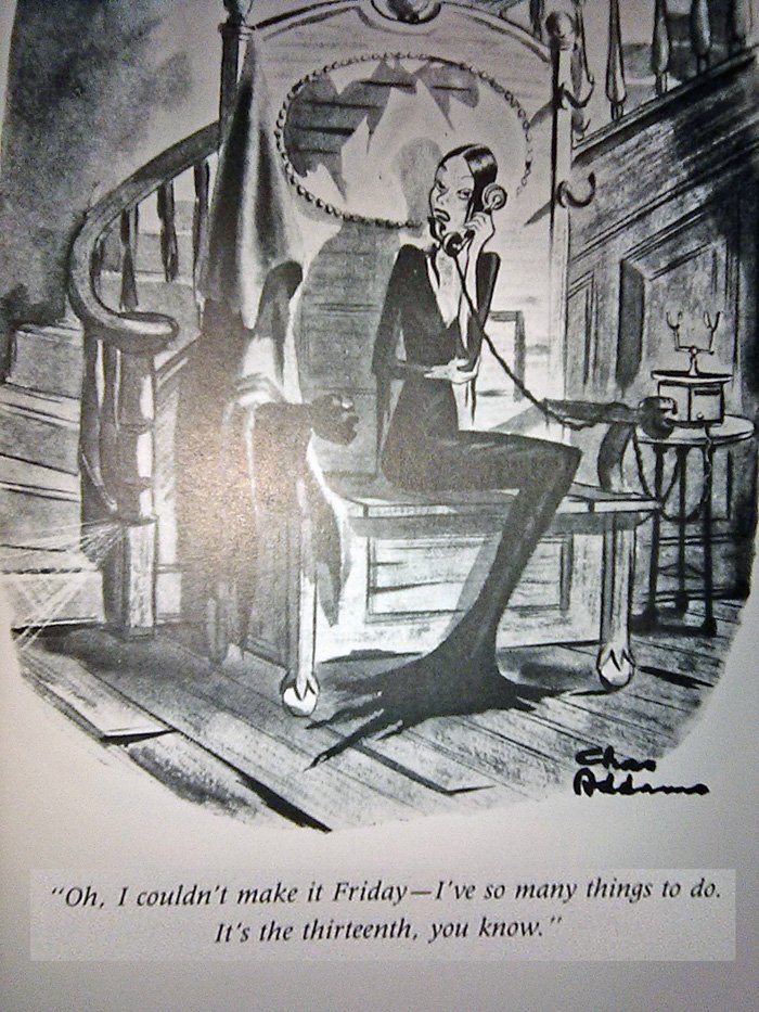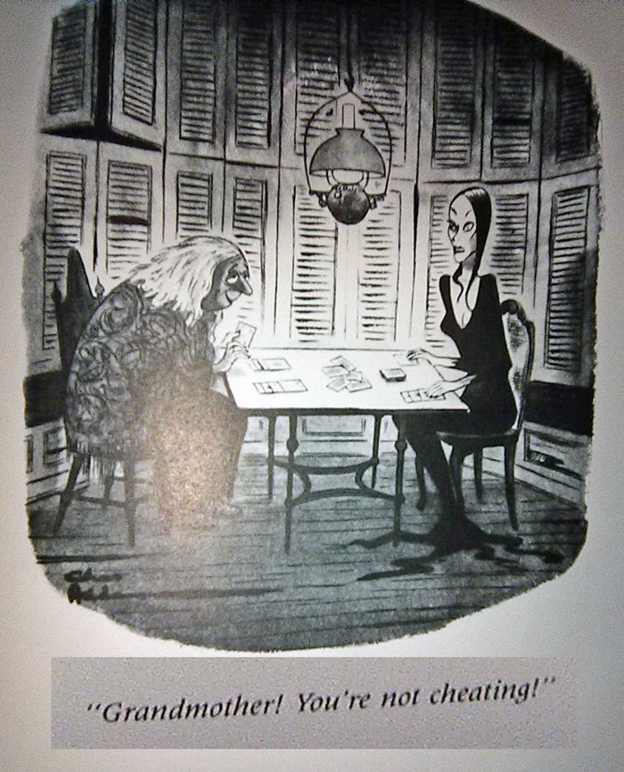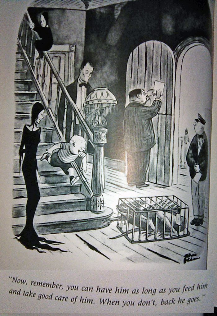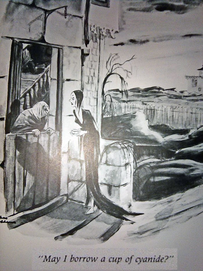 It shouldn't surprise you that Addams had a passion for dark humor that extended well beyond his famous family. This was an early New Yorker cartoon, and there are many others like it pre-Morticia: