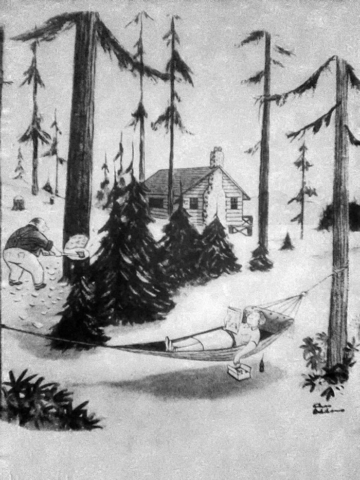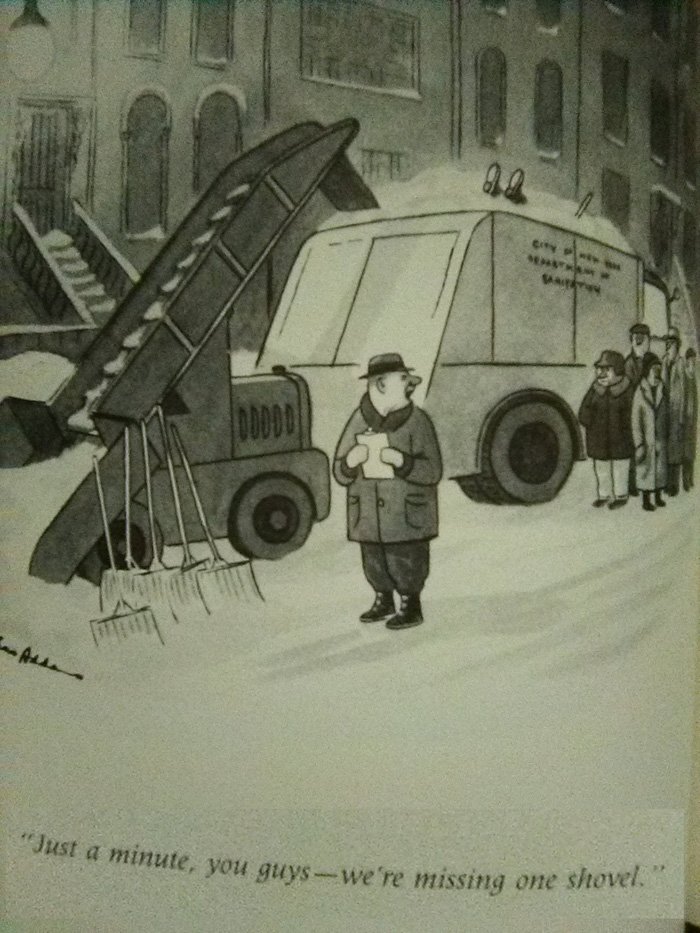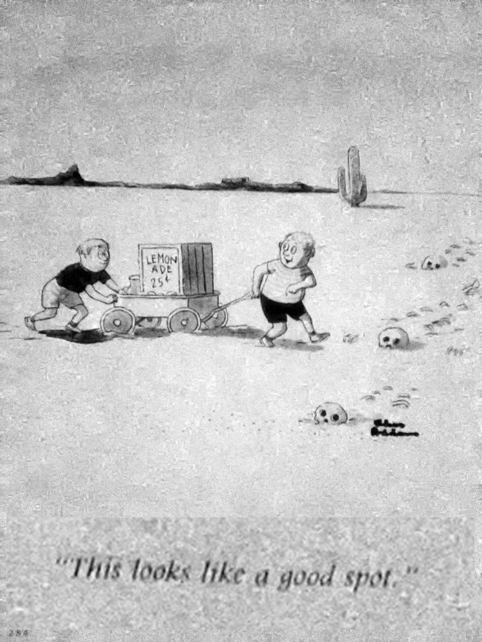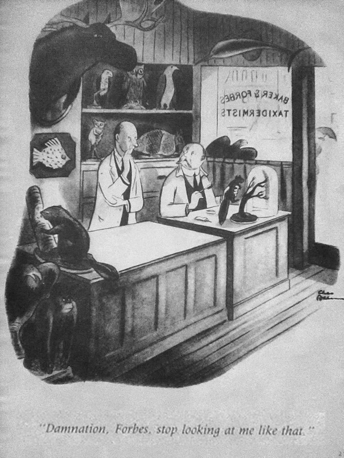 This is a very Far Side-type gag, but of course it was written and drawn way before The Far Side was ever a thing. Has Gary Larson ever cited Addams as an influence? All he would have needed to do to steal this is add a cow.