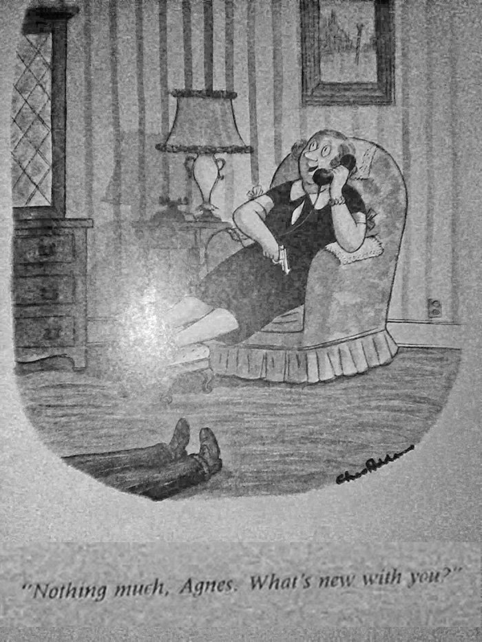 I'm gonna get a lot of "How'd he get AWAY with that?" reactions to some of these, as if gallows humor hadn't been invented until the 21st century. Plenty of Addams cartoons are set either before a murder or after the fact.