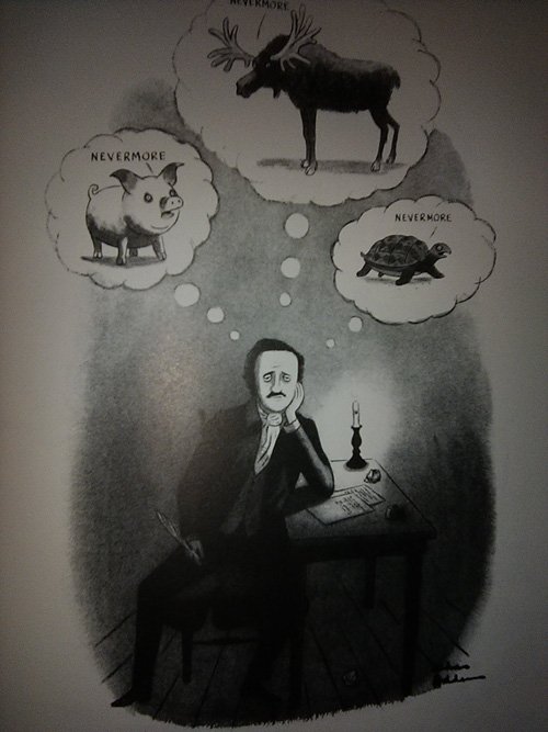 And that he talked with the raspy voice of a Peter Lorre caricature, and that he lived in a creaky old manor just like his characters, with skulls for decorations and live python snakes and blood in the refrigerator and a giant painting of a naked Aubrey Plaza above the mantel -- wait, I'm thinking of Aubrey Plaza's house.