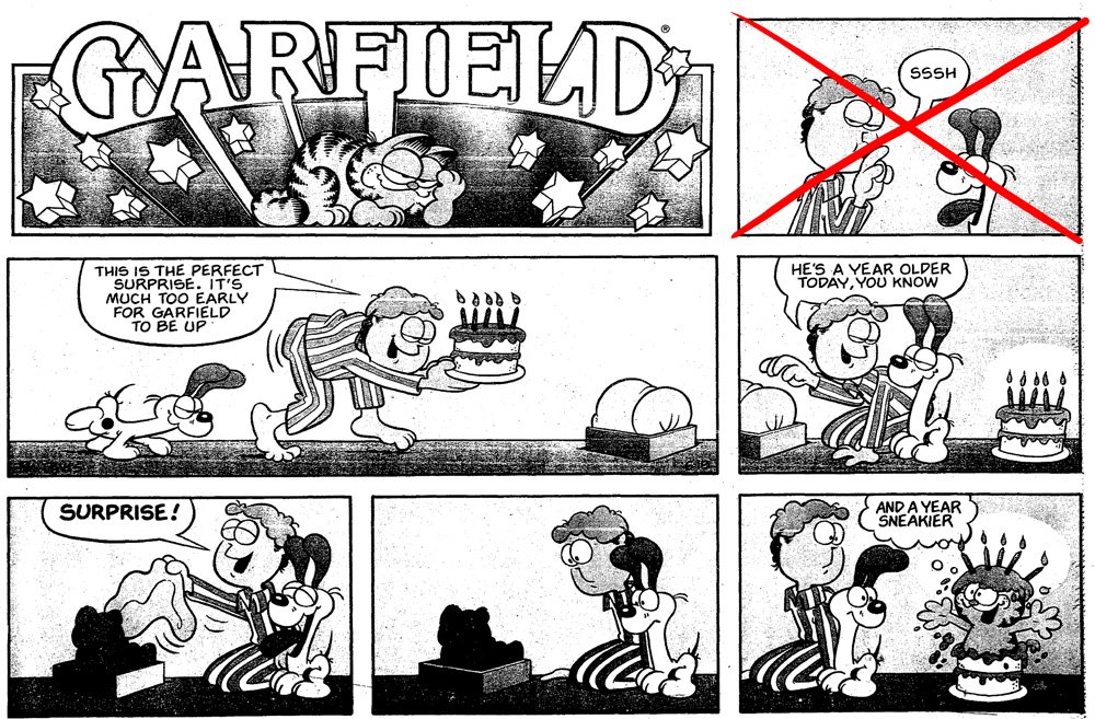 There were some cartoonists that did their best writing camouflage to attempt to disguise the throwaway panels, but it was a wasted effort -- other cartoonists wouldn't even try, wasting the panels on obvious filler content and making the whole trick very obvious. However, the method by which this was done differed from comic to comic. Here are nine of the most common ways to fillet a comic strip.