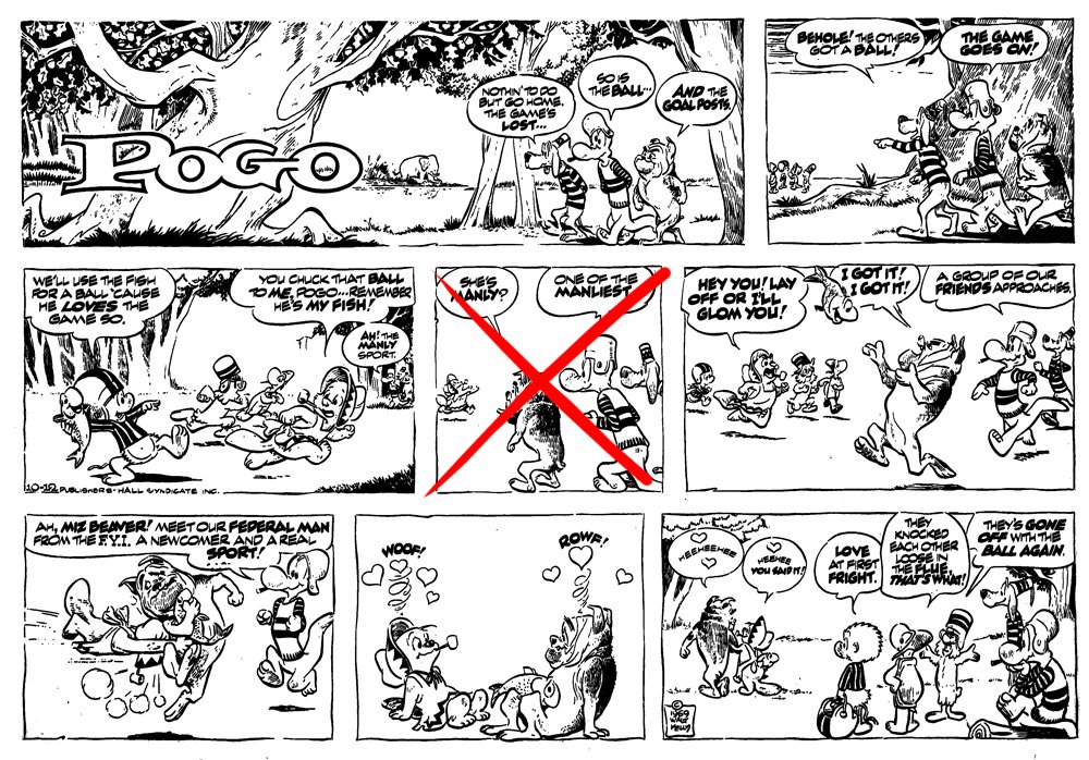 I feel like the legendary Walt Kelly would be too intelligent to prefer to work this way if he could help it. Maybe he had no choice -- maybe this is the format his syndicate demanded. The world may never know the truth.