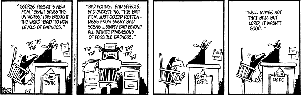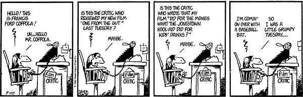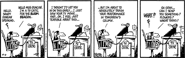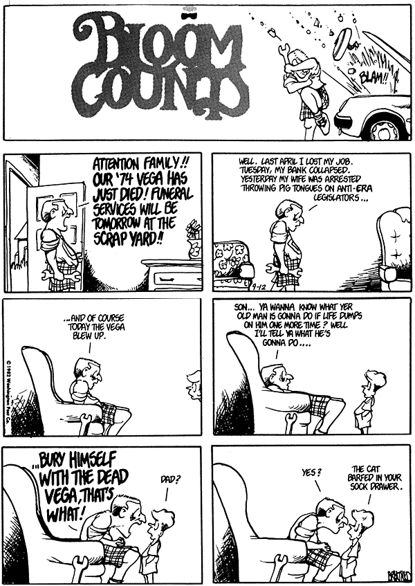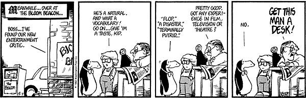 Remember the last time I did a Bloom County piece, and I said "To Be Continued" and confused everyone? This is what I meant. I thought I'd closed the book on lost Bloom County strips, but recently more came from another source. Apparently, several newspaper websites have quietly started running Bloom County in their comics section and didn't tell anyone, including the Seattle Times, which is where I picked up all this from. You can go look (they're into '83 now), but their archives only go back a month. They pick up one episode and dump the month-old one.