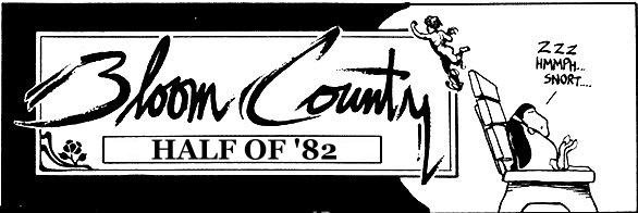 I didn't discover this until the Seattle Times was midway through 1982. They probably already ran 1981 and I missed it (aiiigh). Anyway, here's what's been revealed online in the past few months. One more problem: 1982 was compiled in "Loose Tails," the only Bloom County book I don't own. I have no way of knowing which strips I'm revealing for the first time in over twenty years and which ones I'm merely repeating. So, if you have the book and you know, drop me a line....