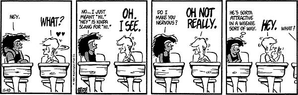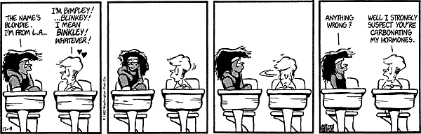 Up until 1986, Binkley was occasionally seen having a crush on a girl named "Blondie" (I guess anything's better than "Quiche"). This is her first appearance, and her longest storyline.