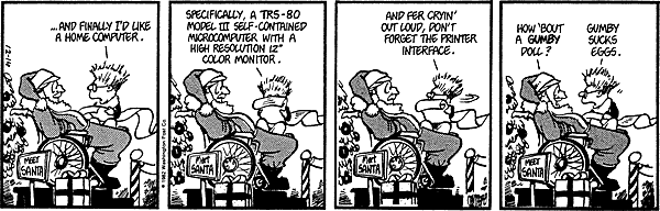 He's wasting his money (or Santa's) asking for the TRS-80. I had one before the Apple, and I would have preferred the Gumby doll.