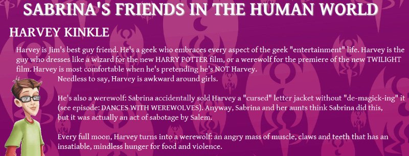 They've made a lot of questionable choices here. Sabrina's traditional boyfriend Harvey has been turned into a geek (or a vintage 1990s-era interpretation of one) and shoved to the side in favor of a newly-invented love interest named Jim. I get the sense they looked at the name "Harvey Kinkle" and thought "must be a nerd" so they gave him glasses and made him interested in nerdy things like......uhh, Twilight?