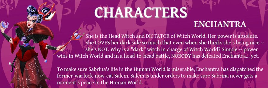 You know who's never shown up in any of Sabrina's TV shows, despite being a key character in the classic comics? Head Witch Della. I have no idea what her banishment is about. They come very close this time, using a tyrant called "Enchantra" in what comes close to Della's old role.