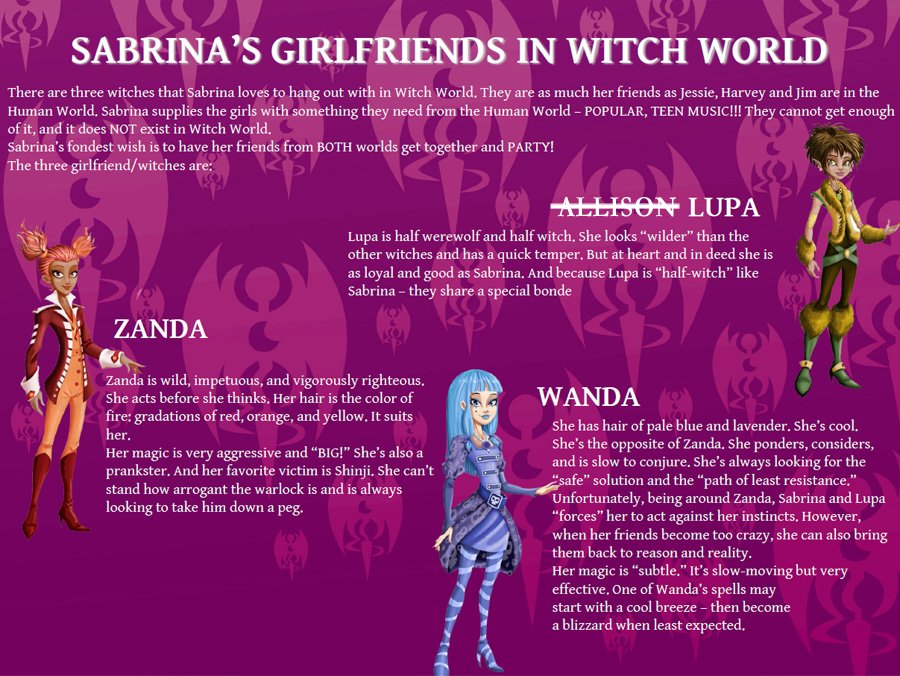 Originally, Sabrina was simply a witch from Earth. But the more recent incarnations of Sabrina have cast witches as coming from an entirely separate dimension. In the 1996 show Sabrina lived in our world, but her family tree stemmed from a place called the "Other Realm," which played a role in the background. Beginning with Manga Sabrina in 2004, she's had to split her time between these two worlds, with separate lives in both, and separate friends in both.