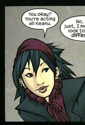 okay? You're acting all Keanu." --Nico, issue 1 |