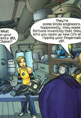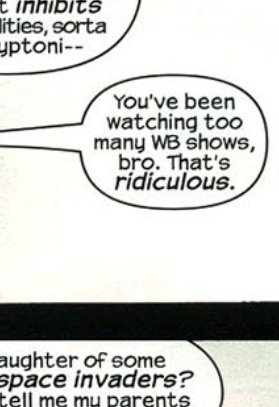 been watching too many WB shows, bro." --Chase, issue 3 |