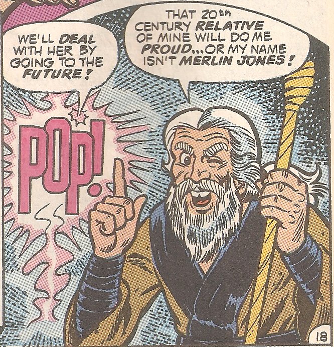 They appear in 13th century England, and immediately run into Patrolwoman Le Fay, or as she's now known around those parts, Morgan Le Fay. She's stolen techy time doodads from an even further future to make herself unstoppable -- the first thing she does is zap Jug and Jan's time-travel devices to make them non-functional, and then uses one of those Lightning Rings to blow them to kingdom come. They hide behind a rock, but it's only a temporary solution.