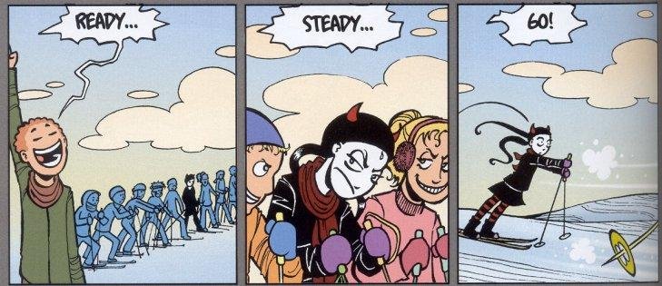 In addition to all these priceless moments and more, those who purchase this book will also get a ten-page, full-length story starring a smaller Nemi, where she competes in a skiing competition and meets the Abominable Snowman. Every Nemi collection has included a longer-sized story in the middle, and while I can't speak for the quality of the other two, this one is sweet and poignant. No spoilers here....read it on your own. (And don't think you can try your local library. Like they carry Nemi? Hah!)