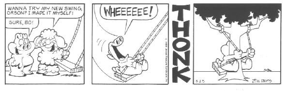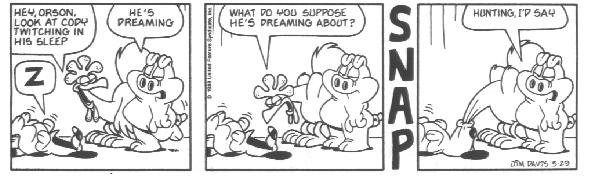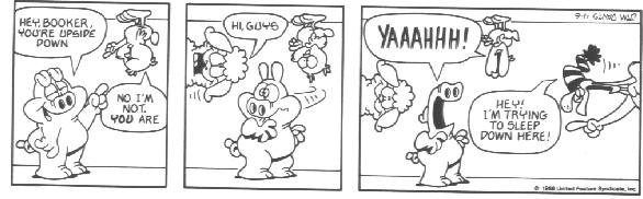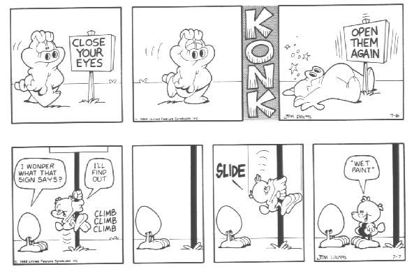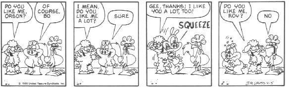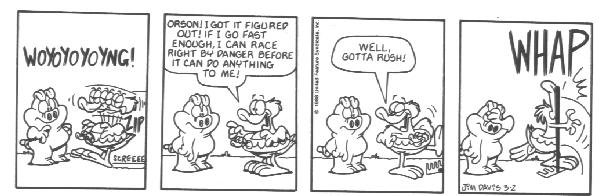 I'm serious. It's just unbelievable from this point. You have no idea how funny U.S. Acres is about to get. If this strip had premiered today this book would have sold a million copies (as opposed to 1989, when the book actually came out and good comic strips were plentiful). If you thought trading tall tales about Chuck Norris was humorous, you don't know anything yet. This is some seriously funny stuff.....