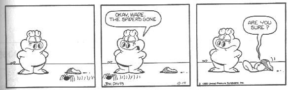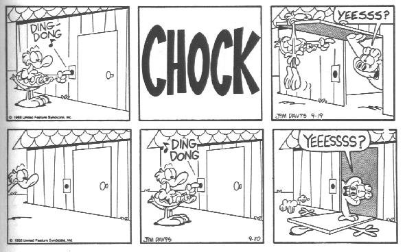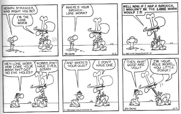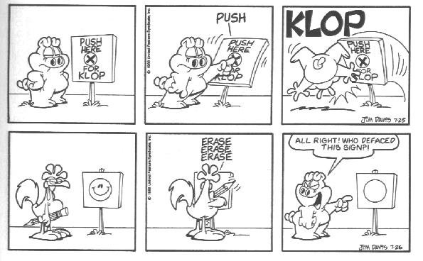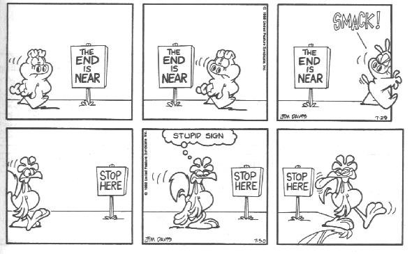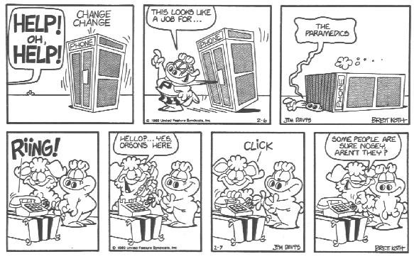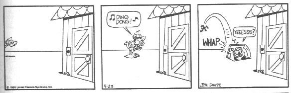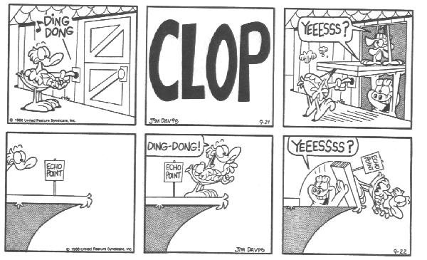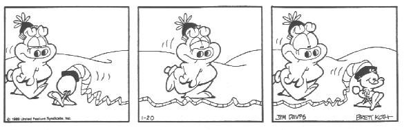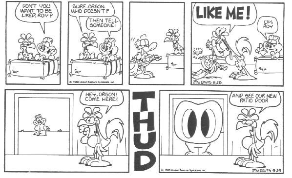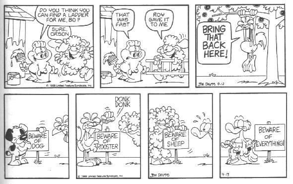 This is the final appearance of Cody, and Blue disappeared earlier. This is also around the time that Garfield and Friends premiered on TV. My theory (and I said theory, don't post it on Wikipedia) is that Davis was already tired of Cody and making plans to erase him from the strip when the show was in development.