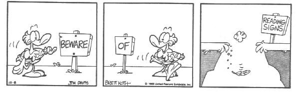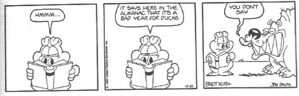 The last few months of strips gained an extra signature. Jim Davis' assistant Brett Koth was now co-credited as responsible for the strip. Koth has also been just as involved in the Garfield strip, but he remains uncredited there.