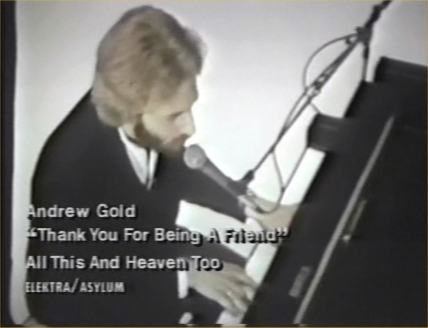 Our time is short, and the notable mistakes are fewer from here, so here's a quick glance through the rest of the lineup...."I'm Gonna Follow You" by Pat Benatar starts abruptly, then "Savannah Nights" by Tom Johnston, "Lucille" by Rockestra (a 50's-style bopper), Styx appears again with "The Best of Times," Carly Simon gets "Vengeance," Iron Maiden's "Wrathchild," Blotto's "I Wanna Be A Lifeguard," Rod Stewart's "Passion," Elvis Costello's "Oliver's Army," two videos without tags, Juice Newton's "Angel of the Morning," Rock Pile's cover of Elvis's "Little Sister," "Hold on To The Night" by Bootcamp, "Dreaming" by Cliff Richard, "Is It You" by Lee Ritenour, "Tusk" by Fleetwood Mac, "He Can't Love You" by Mike Stanley, "Tough Guys" by REO Speedwagon, "Rapture" by Blondie, "Don't Let Go The Coat" by The Who, "Ain't Love a Bitch" by Rod Stewart, "Talk of the Town" by The Pretenders, "Can't Happen Here" by Rainbow.....and as if it was intended as a signoff before the recording stopped, "Thank You For Being A Friend" by Andrew Gold.