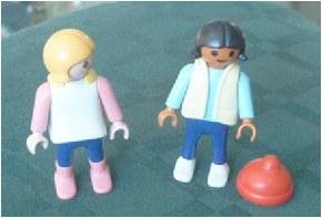 She's back, and she's black. The THIRD Mare Winningham figure is either a godsend or Playmobil's idea of a sick joke, but either way, weeeee've got triplets! Two Mare Winninghams was confusing enough, but three? I hope the next box contains small toy ID tags so we can tell them apart. I mean, at this point, the slutty Mare Winningham II is only marked by her pink clothes. If she changes outfits, we might mistake her for the virginal Mare Winningham I. And what if Mare II gets a severe suntan - then we'll think she's the third! I wish that puppy in the last box was big enough to eat them all and put us out of our misery. Mare Winningham III is dressed in an aqua blue shirt and royal blue pants. That's a pretty bad outfit. Mare III sucks.