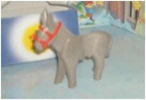 The Christmas Donkey does fit in with the whole manger motif, but on the other side of the coin, it's not exactly sized to the same scale as the rest of the creatures we've encountered. Unless, of course, you're the type who consider sheep and lambs to be roughly 34 times smaller than a donkey. This is one big jackass. The kind that could pull a carriage or kick it to pieces with a shared ease, this is a donkey who's seen it all. Nothing phases him these days - not even the Mare Winningham triplets.
