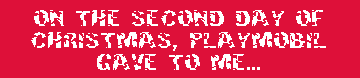 Ah, a plastic fence! Joy to the world! Actually, it's three separate plastic fences that join together to form one massive rotating plastic fence. Again, I'm not sure what this toy has to do with Christmas. I guess it's a good way to keep out people of other religions? If that's the case, I would've preferred a shotgun or a crab mallet. Preferably the crab mallet.