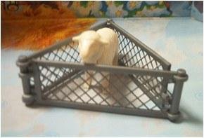 The fence is good for keeping the previous lamb toy locked up. I like to pretend that the lamb did something terrible to warrant it's imprisonment. But what crimes could a lamb commit? I couldn't think of anything either, so I've changed my vision: it's not really a lamb, it's a midget who kills people disguised in a lamb's costume. My hot new plastic fence will protect the world from further deadly dwarf action. Thanks, plastic fence.