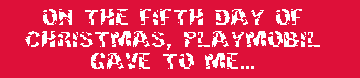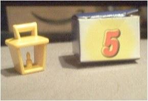 The fifth box of Playmobil's advent calendar brought a surprise - a little plastic yellow candle lamp. Now, I don't doubt that there's a proper term for the kind of lamp pictured above, but I just can't for the life of me remember what it's called. Maybe a lantern? I always pictured lanterns with a more, I dunno, girlish figure. Almost shaped like an '8.' If you're wondering why I'm droning on and on about this, it's pretty simple to explain. I just don't know what else to say about a 1" plastic candle lamp.
