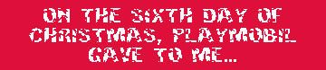 The sixth box contained a 2.5" little girl figurine, styled sort of like a Lego toy, with the one difference being my inability to separate her torso from her waist area. Bummer. The little girl is obviously a Christmas staple. The first thing I thought of upon seeing her was holly and the Sears Wishbook. The second thing I thought of upon seeing her is how brilliant Playmobil really is. All these toys have nothing to do with Christmas whatsoever. They're obviously all overstocks thrown into an advent calendar so the company can turn a profit on their shitty surplus plastic. On the plus side, Little Girl has a removable hat, and claws instead of hands!