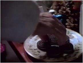 More Oreo madness! This commercial, which debuted at least as early as 1998 if not a few years earlier, tries to establish Nabisco's trump card as THE COOKIE to give THE SANTA. Growing up, "Chips Ahoy!" always got the nod in our house. One year, my mother even convinced me that carrots and milk were Santa's favorite. Retrospectively, this may have had something to do with her penchant for waking up in the middle of the night and eating all the cookies. Bottom line -- we never used Oreos. Even if we wanted to, they would've never lasted till midnight on Christmas Eve.