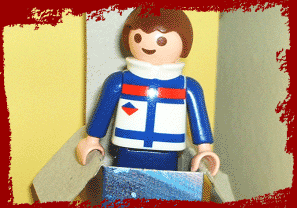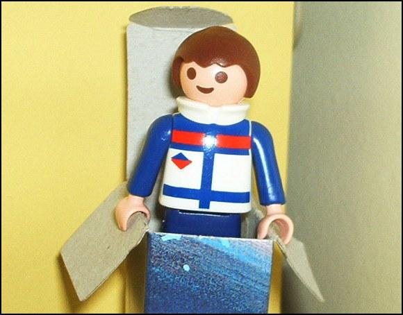 Instead of a coat, or a hat, or seed, or a bone, the contents of Box #10 was the young man shown above. The Mysterious Boy. Unable to speak and apparently suffering from some rare form of toy amnesia, Mysterious Boy's jovial disposition only serves to mask his inner torment. Who is he? Why is he here? Why is he dressed to ski? These are questions he cannot answer. I curse myself for having been so rough with the box when I bought this thing -- I quite possibly knocked the smart right out of poor, poor Mysterious Boy.